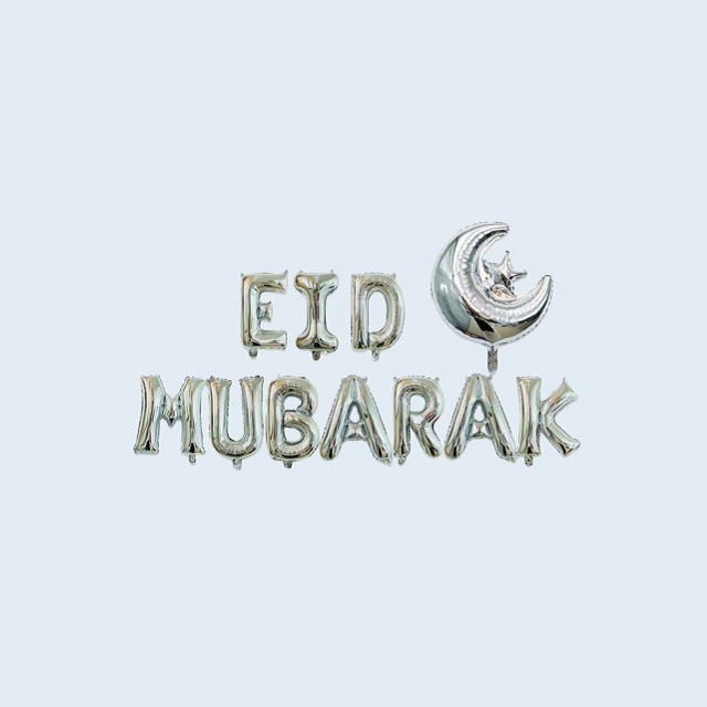 Eid Mubarak aluminium foil letters balloon with crescent moon and star. Ideal for decorating your homes and venues with. Perfect for your Eid celebrations.